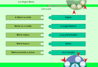 - En la parte de abajo verás un círculo con el número de la página, ahí si pones el ratón encima aparecen flechas para ir hacia adelante o hacia atrás, hay ejercicios en los que verás un "V", a la que tendrás que dar para que el ejercicio se corrija.